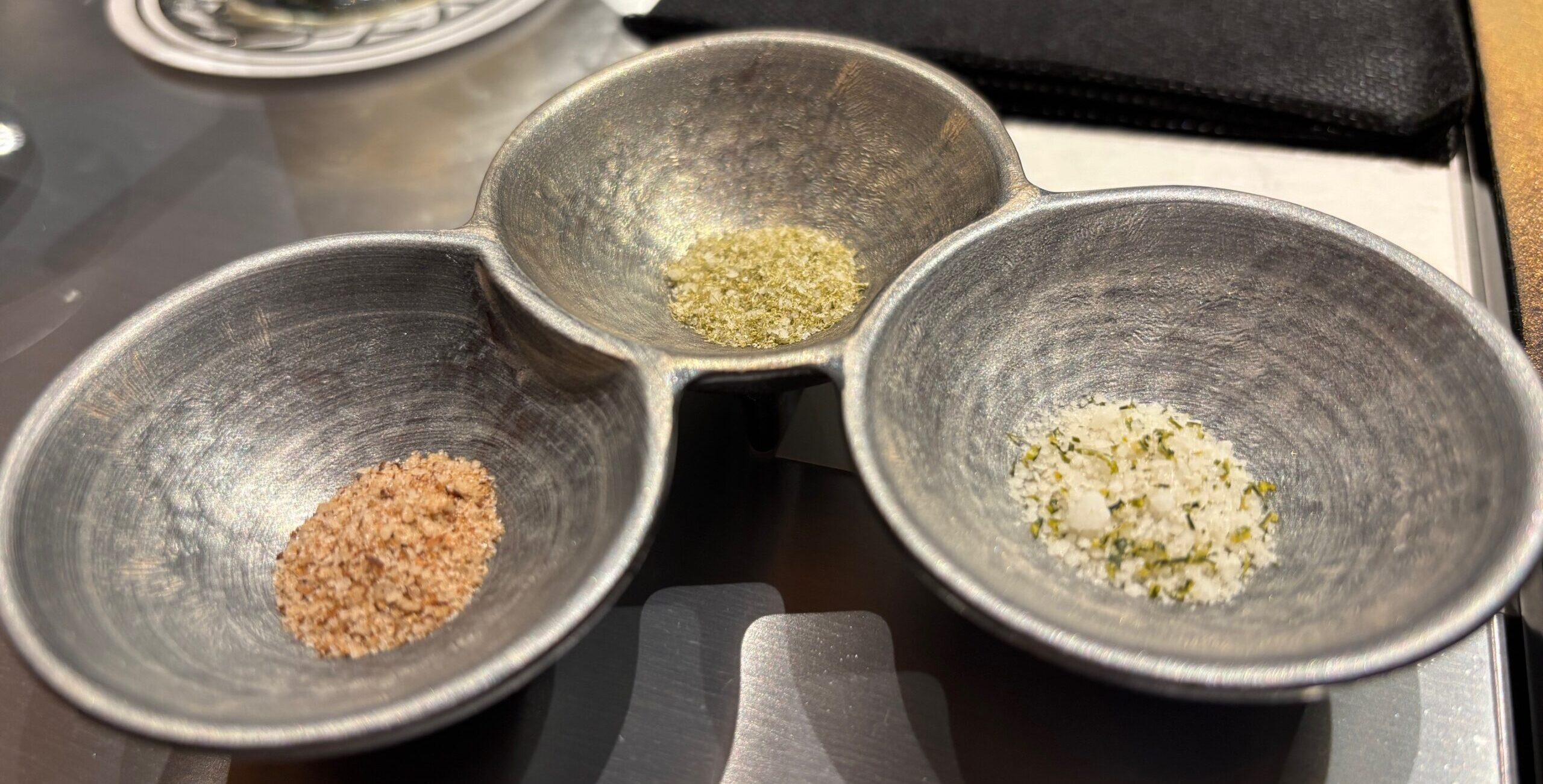 鉄板焼きに合わせたオリジナルブレンドのお塩を3種類ご用意いたしました。